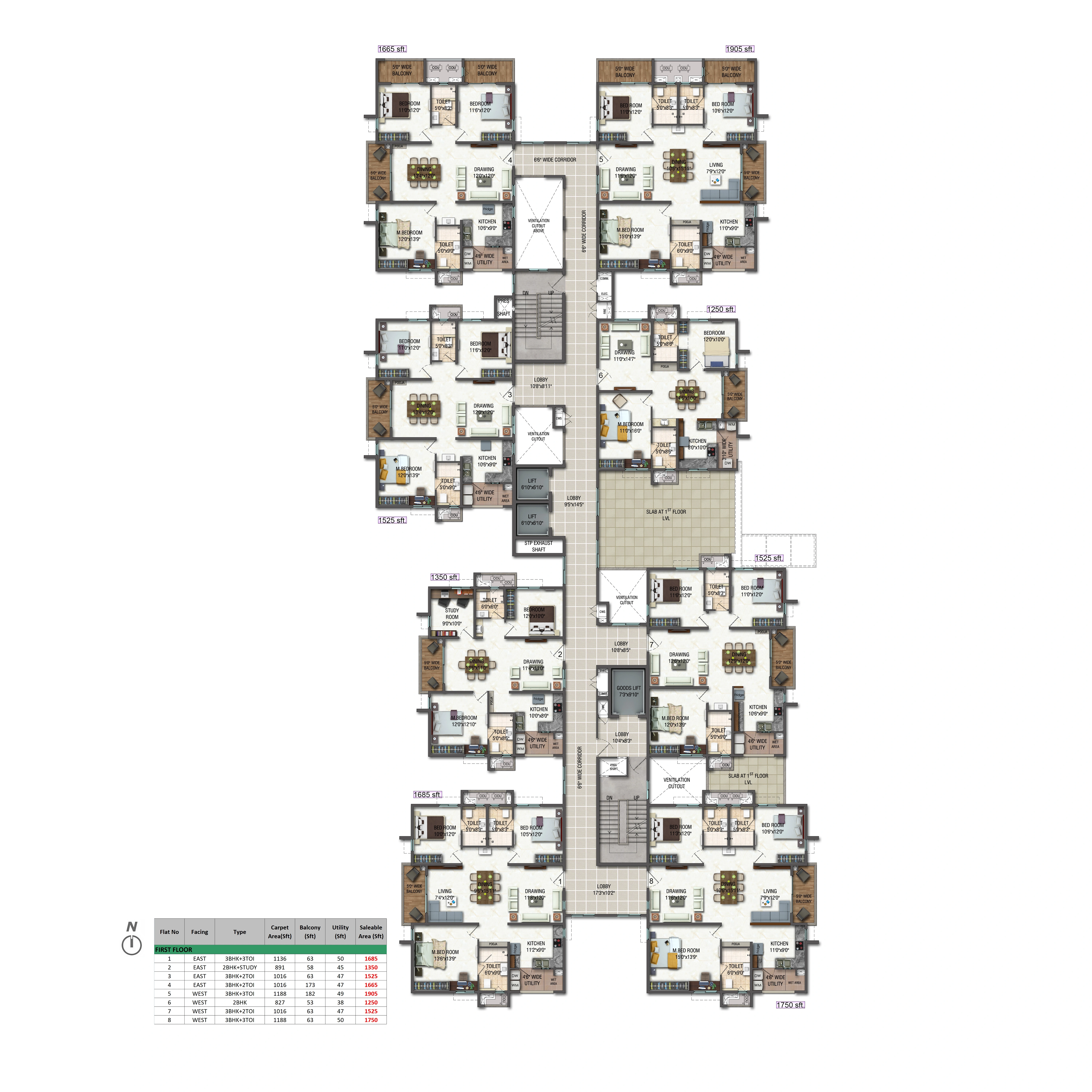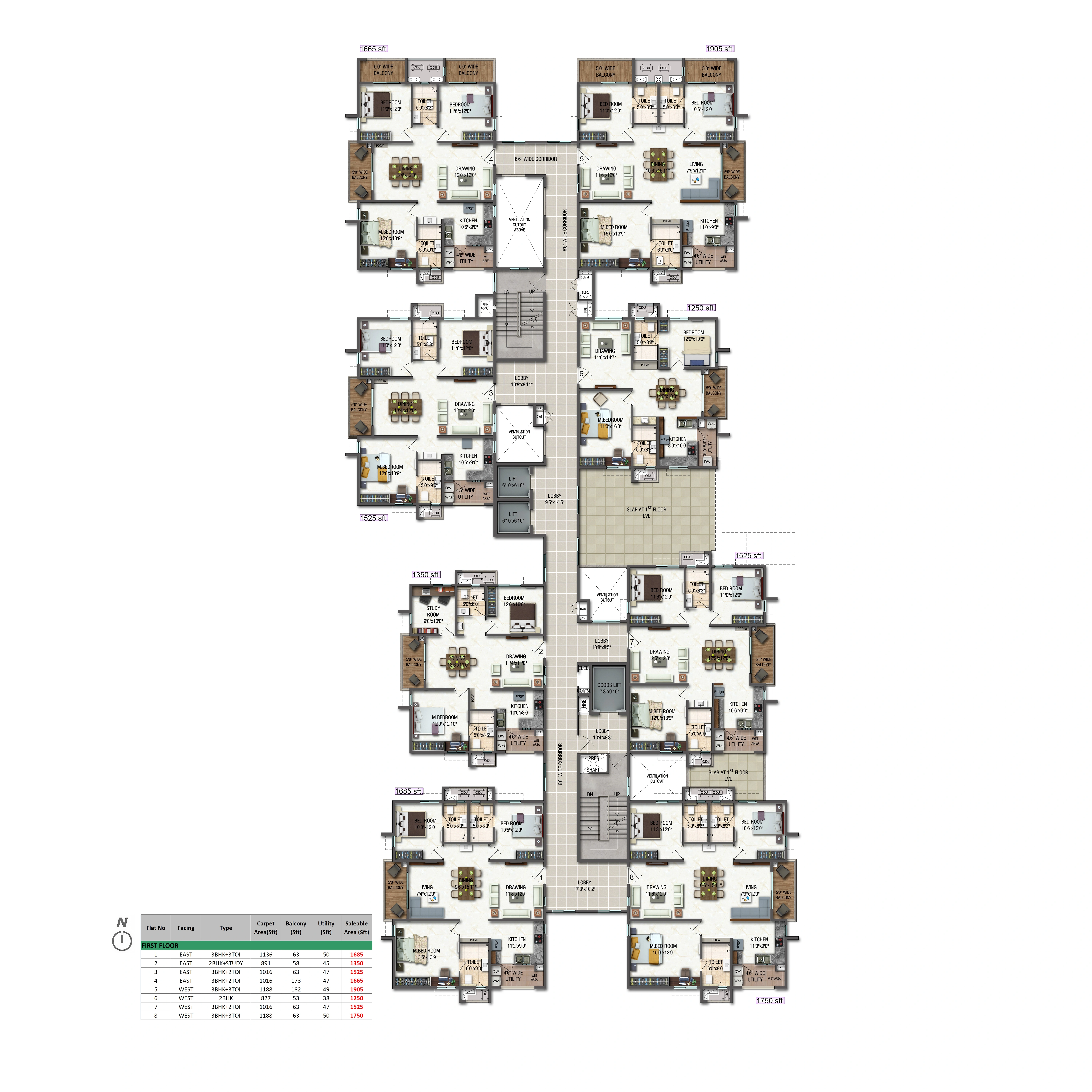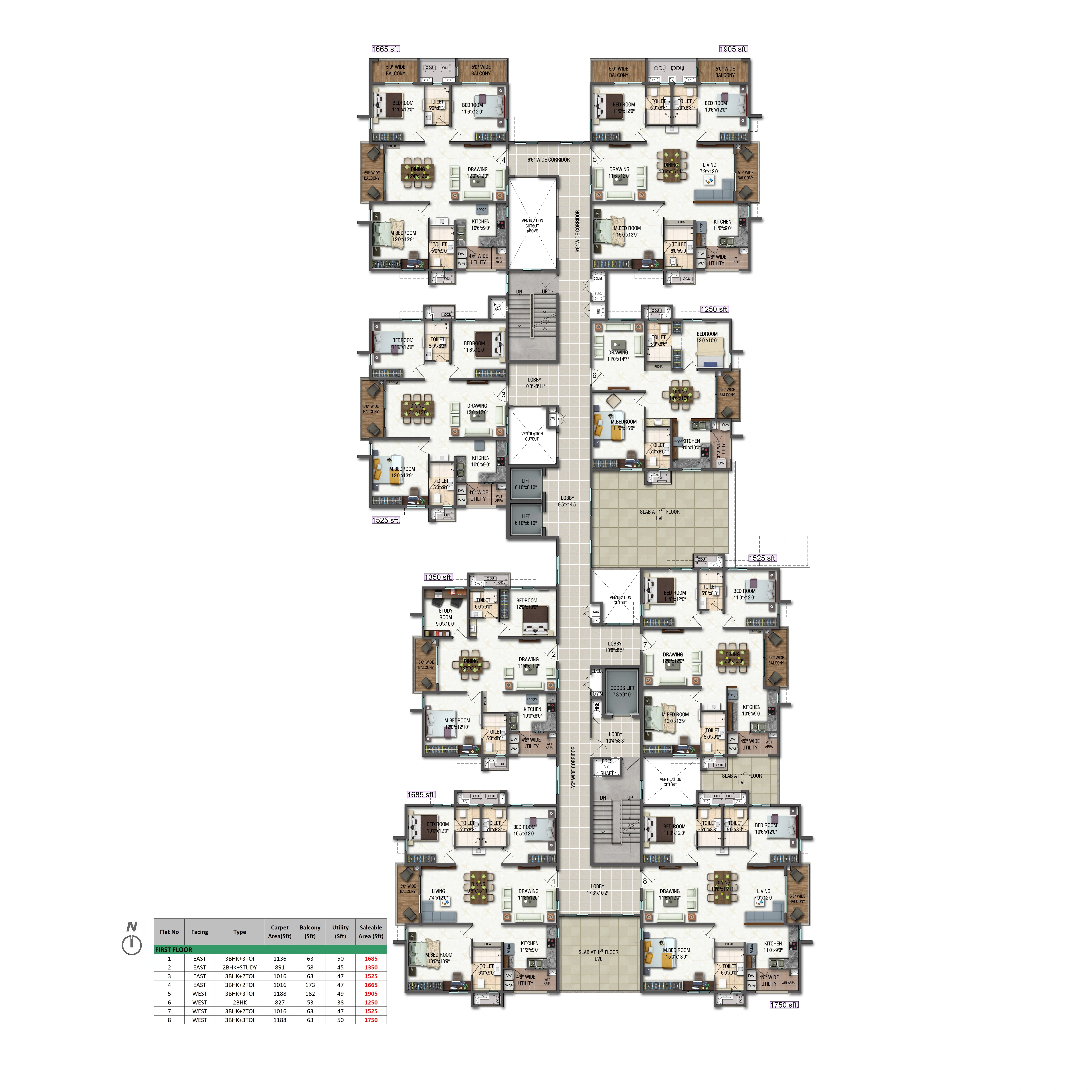 Unit Size: 1294 - 1911 Sq. Ft.
