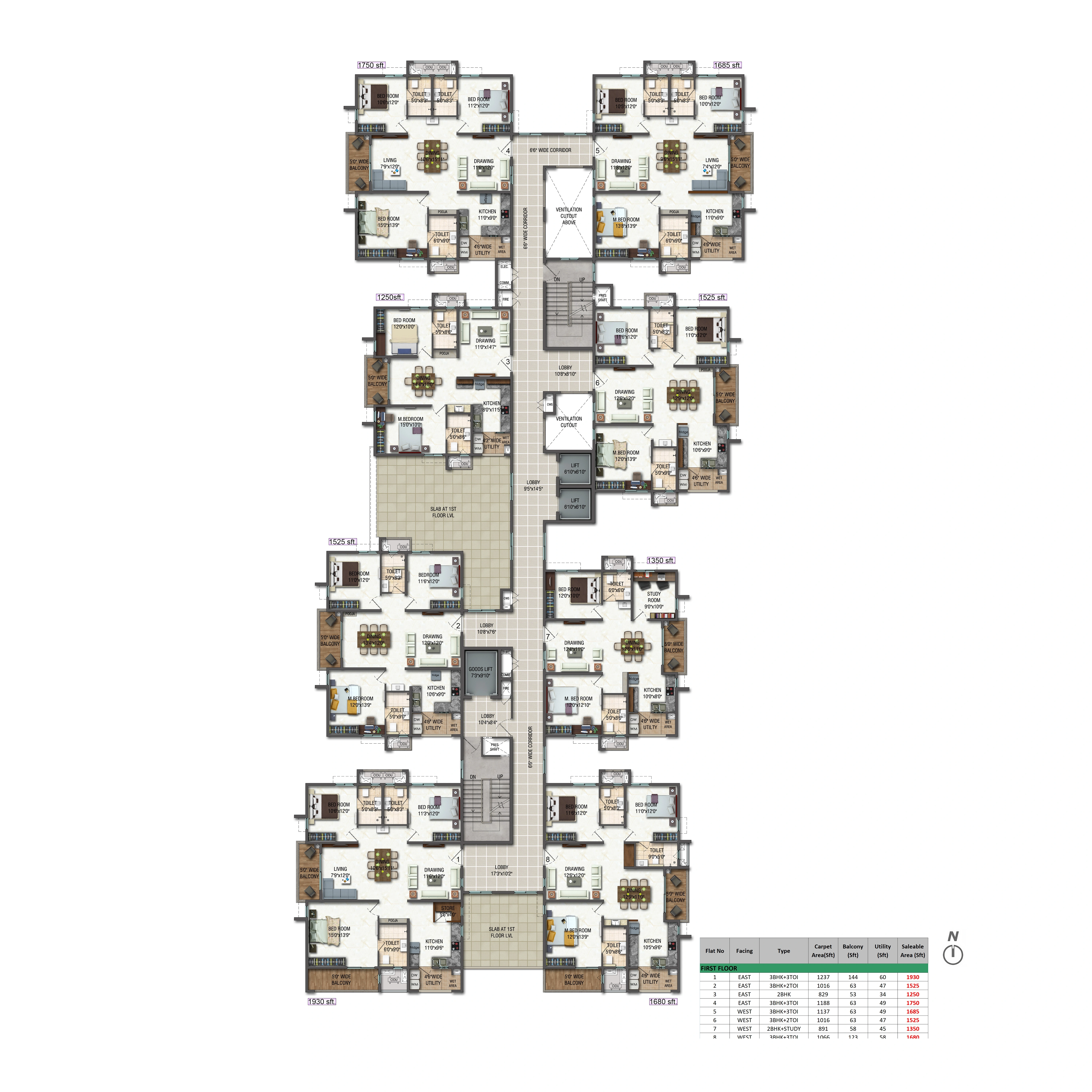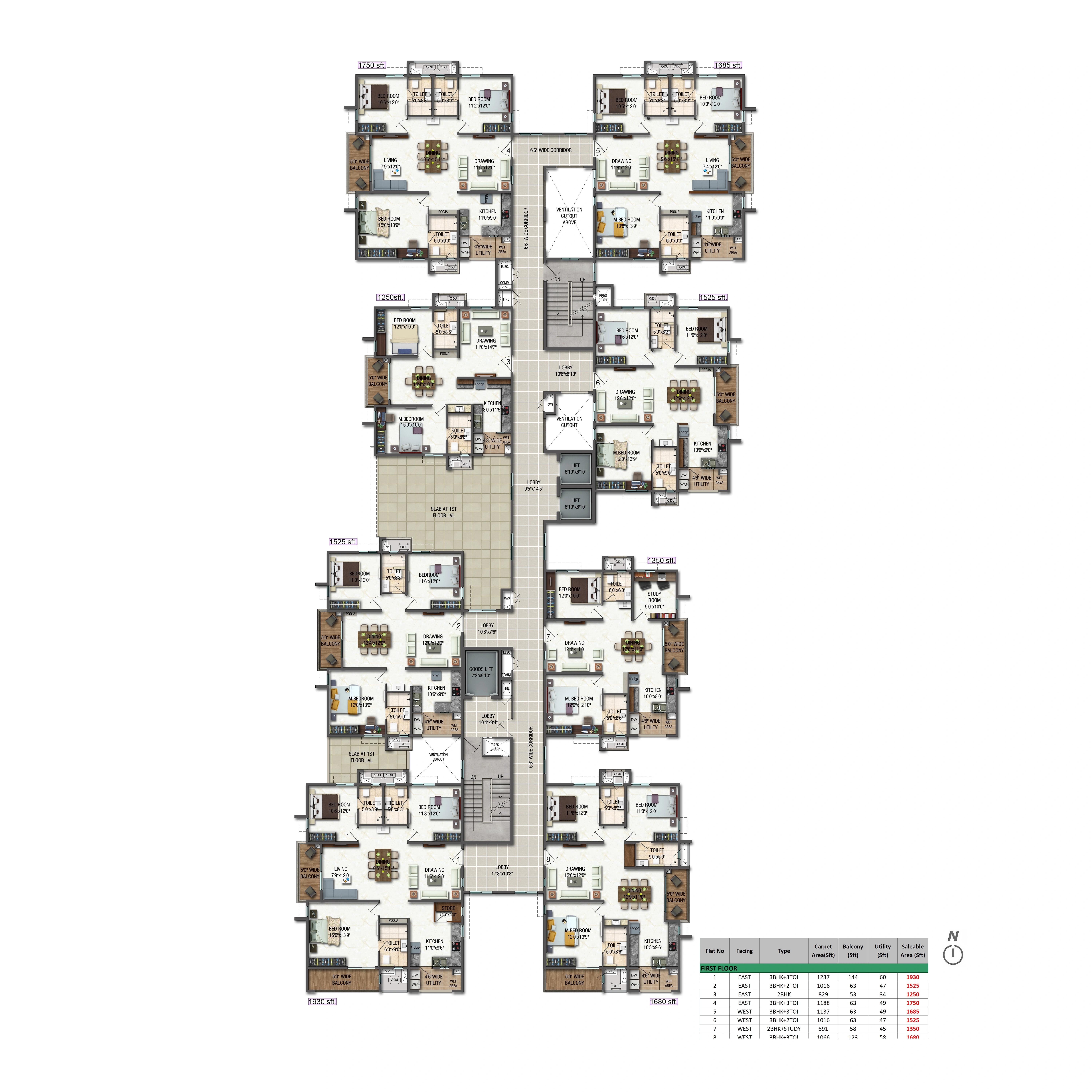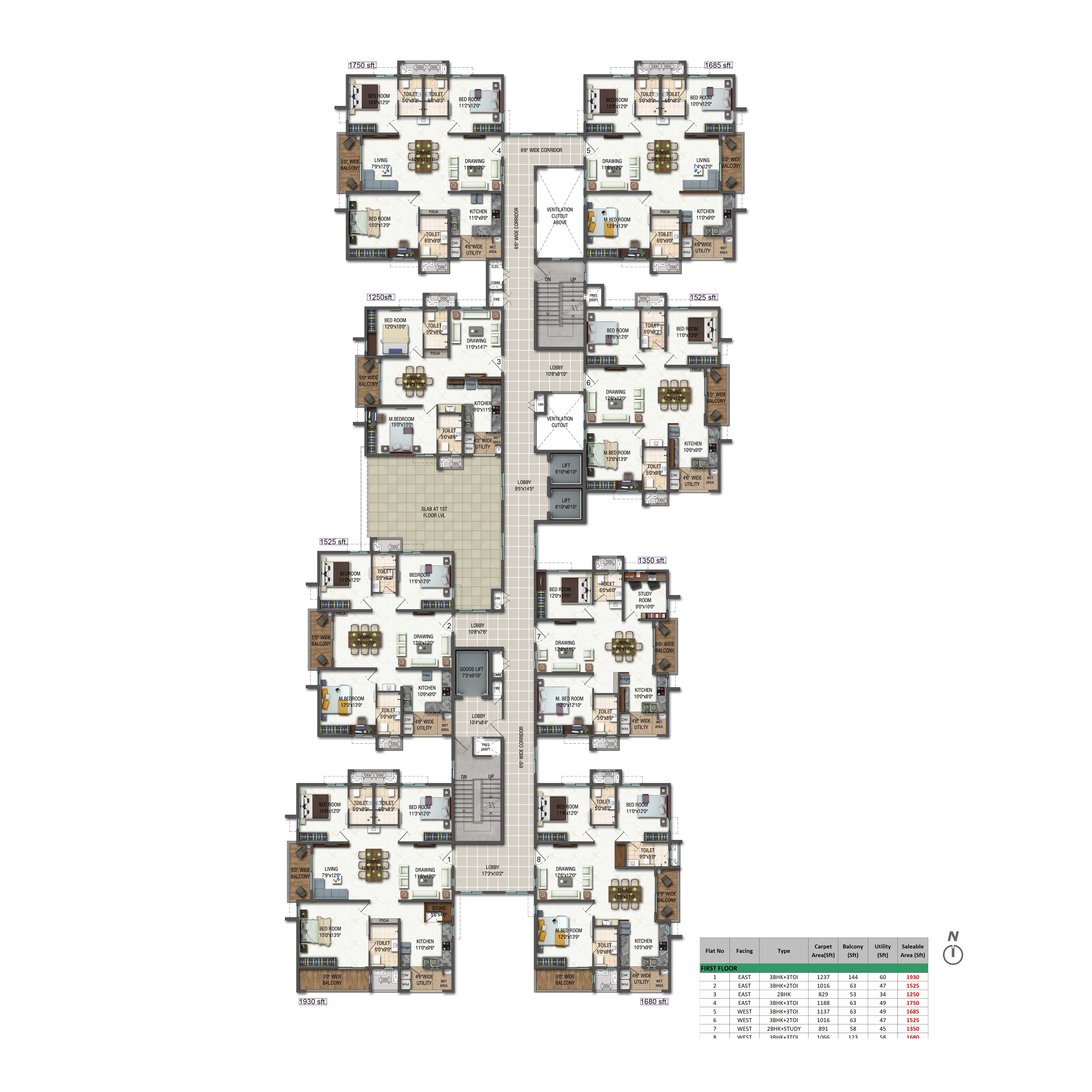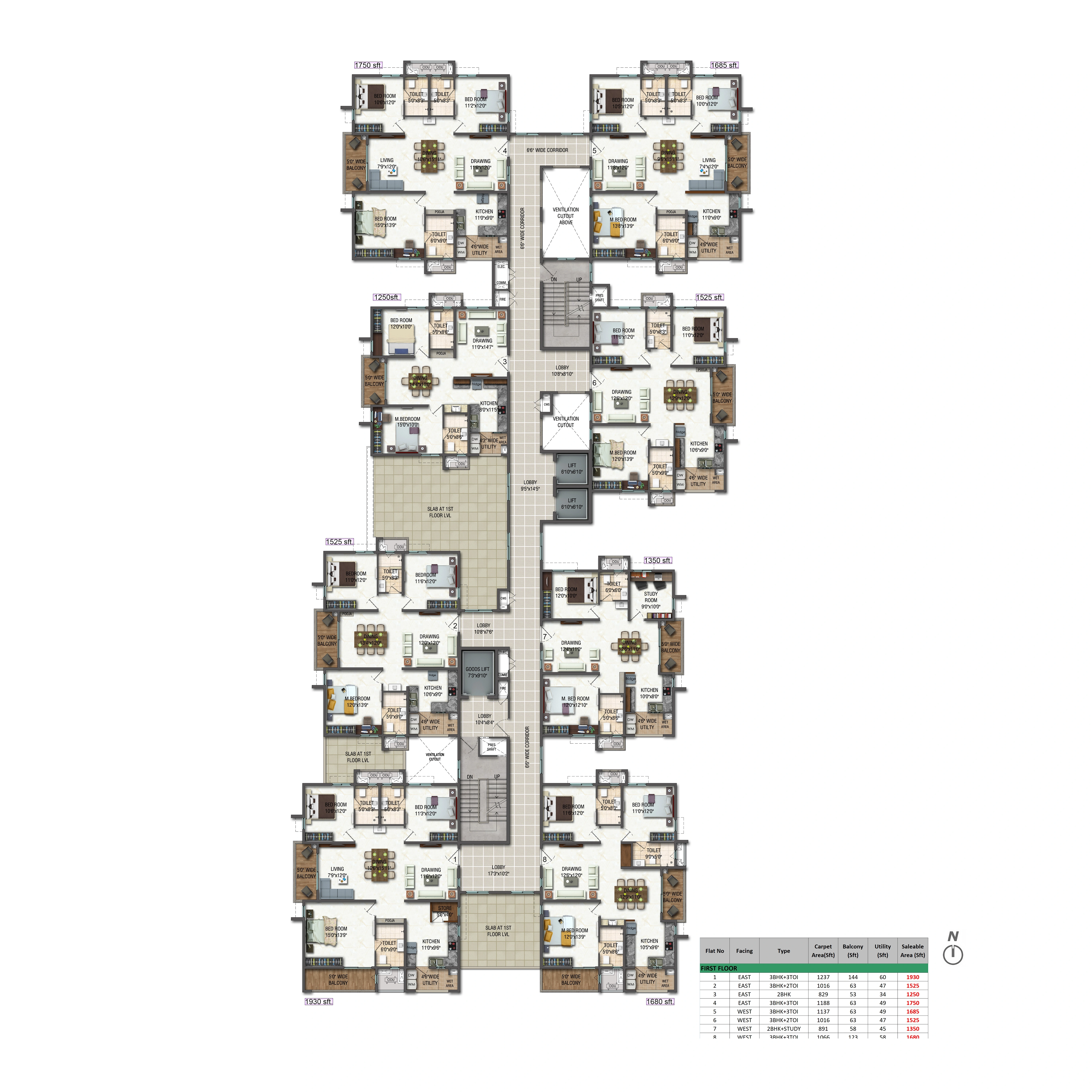 Unit Size: 1294 - 1911 Sq. Ft.